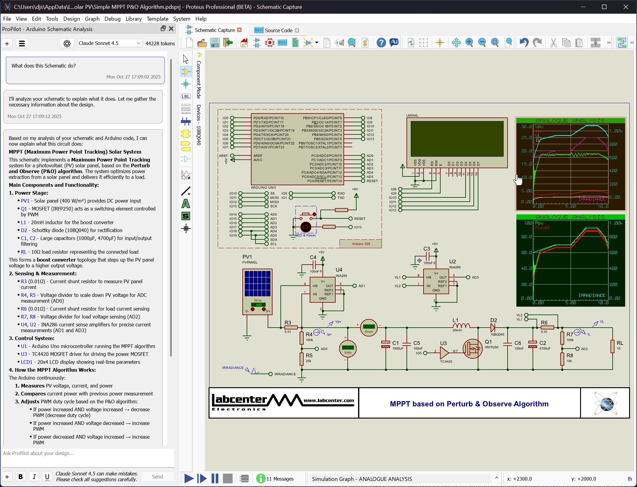 EDAi is the core intelligence layer built directly into the Proteus Design Suite, providing a native conversational interface to your design environment. Because it has direct access to the schematic, simulation data, and embedded code, it can respond with guidance that is grounded in the actual project you are working on. This integration allows EDAi to support decision-making, explanation, and navigation in a way that complements the normal design workflow, rather than sitting outside it. By embedding AI at the platform level, Proteus becomes a workspace where design and reasoning happen side by side — enabling a more fluid and intelligent engineering experience.